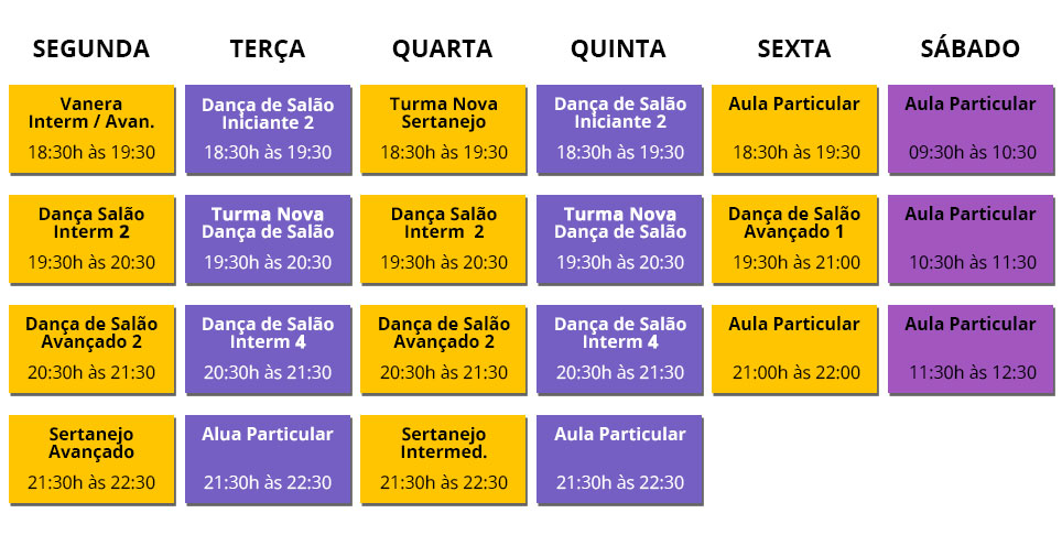 Turmas regulares de Dança de Salão (bolero, forró e samba) – 2x por semana.